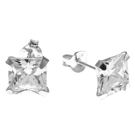 Stříbrné náušnice - čirý zirkon ve tvaru čtverce, velikost 7 mm