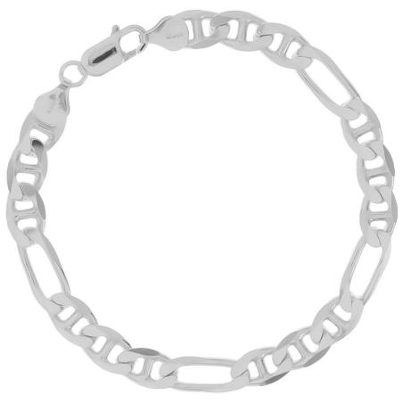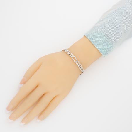 Náramek je vyroben ze stříbra ryzosti 925/1000. Vzor řetízku: Figaruchi. Povrchová úprava stříbra je ošetřena rhodiováním, které zabraňuje oxidaci (černění, žloutnutí a ztrátě lesku), díky čemuž náramek zůstane dlouho jako nový. Zapínání je na kvalitní a bezpečnou karabinu.